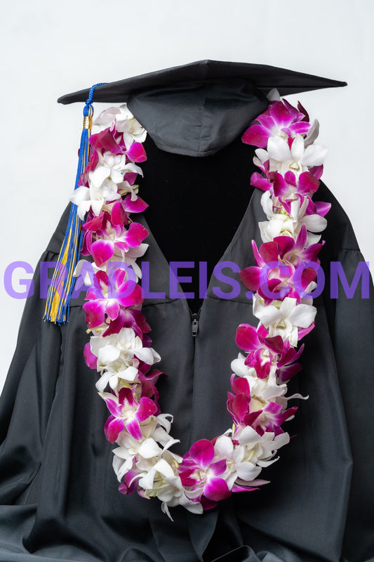 PRE-ORDER Bombay and White Double Orchid Graduation Lei