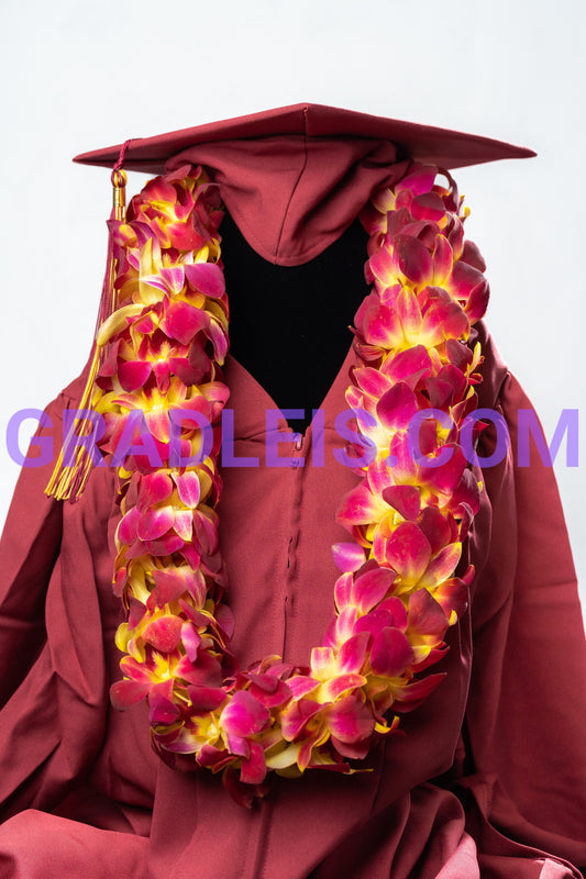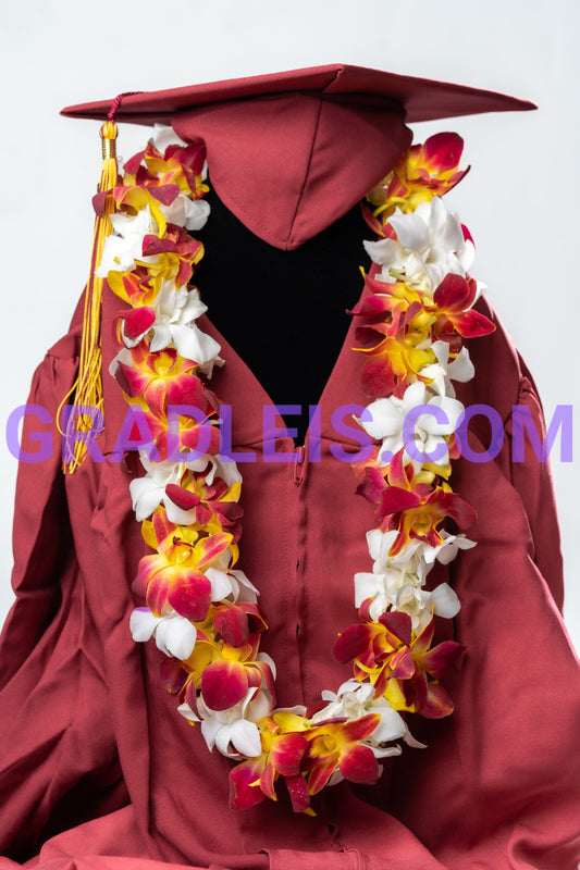 PRE-ORDER Trojan Yellow & Red Double Orchid Lei